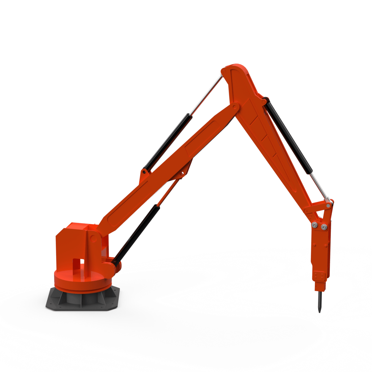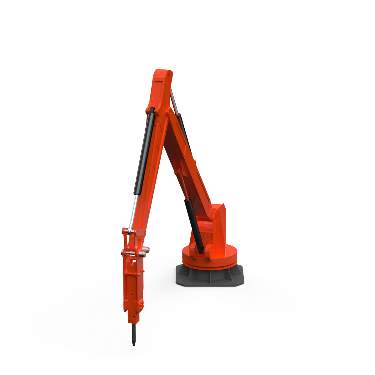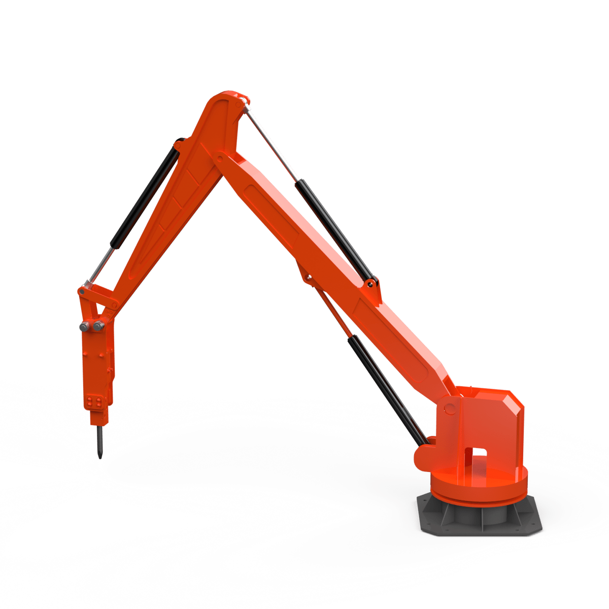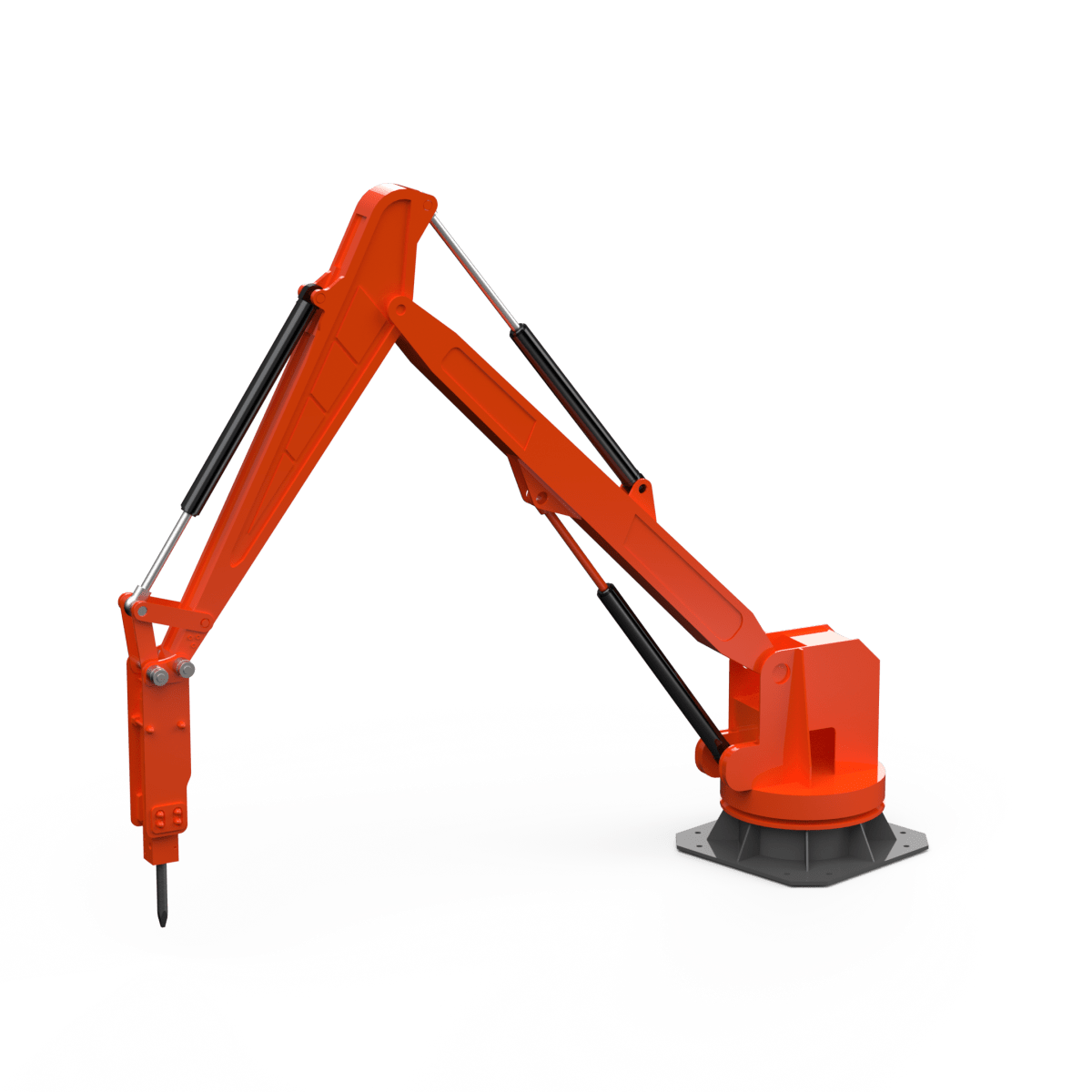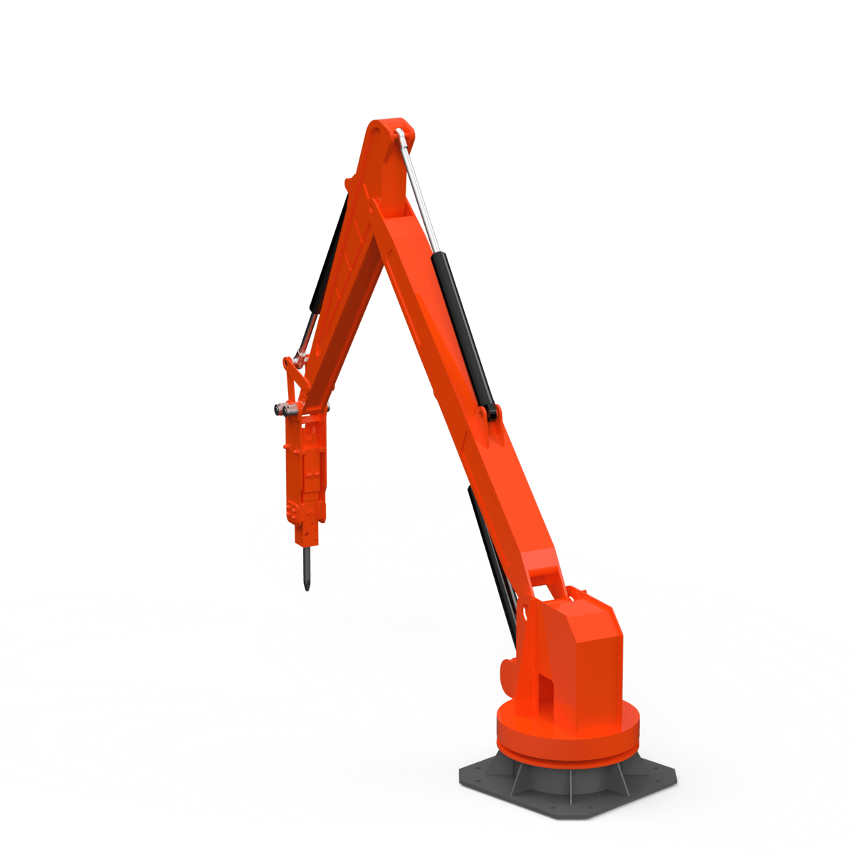 Бутобой предназначен для механизации работ по разрушению негабарита. Манипуляторная установка с навесным гидромолотом позволяет оперативно дробить крупные куски руды, породы, шлаков или бетона до размеров, необходимых для стабильной подачи в дробилку и дальнейшей переработки.