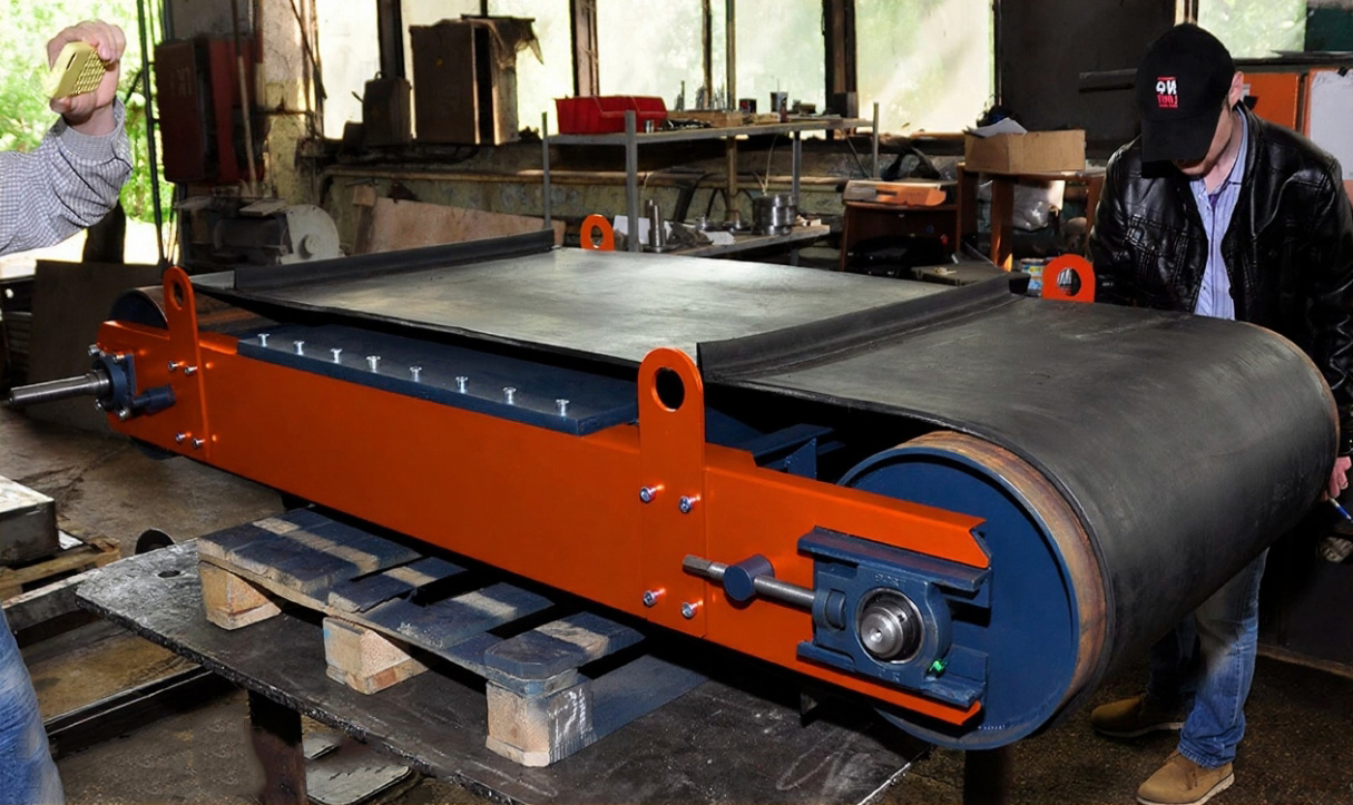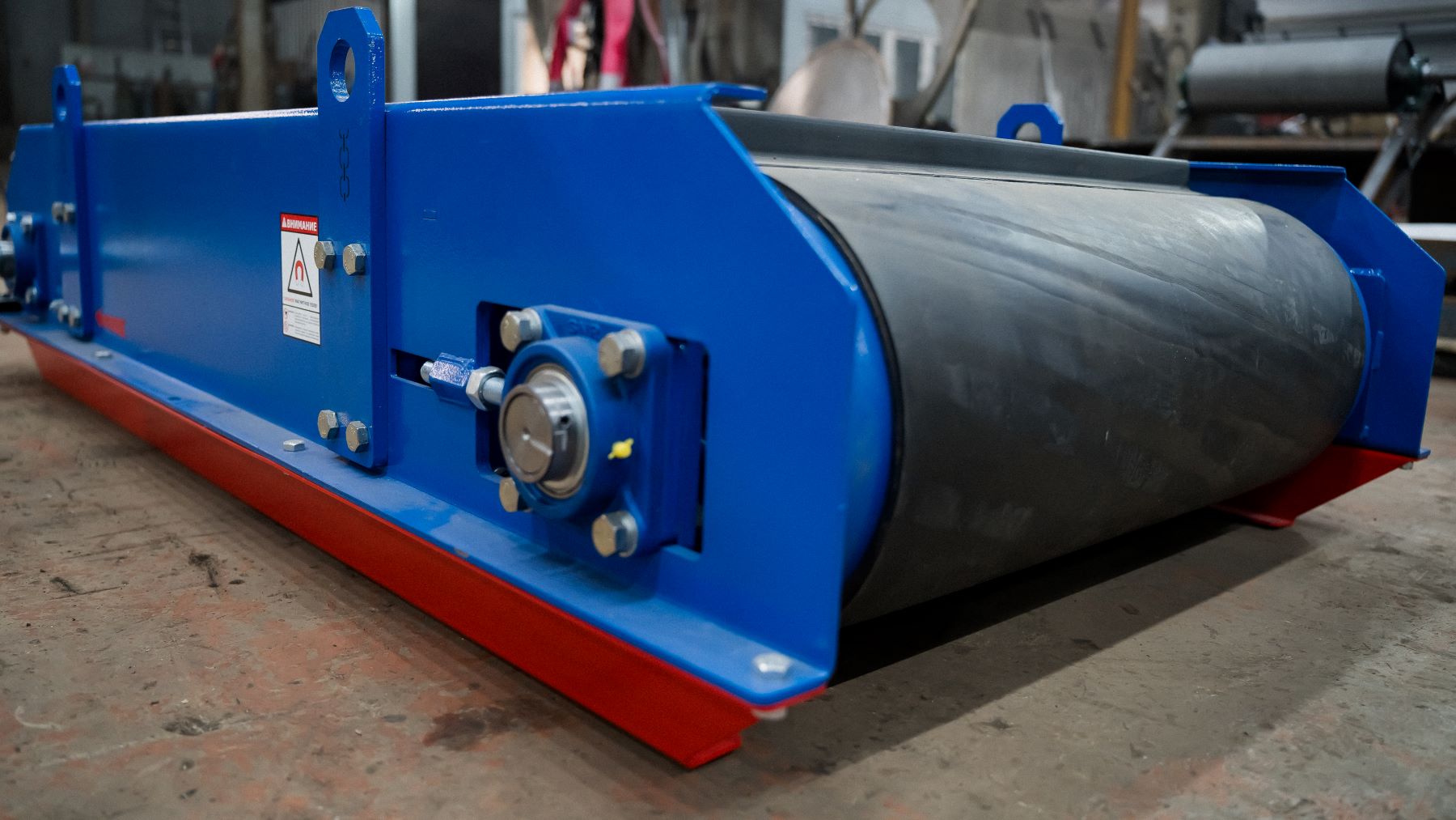 Магнитная плита с автоматической очисткой монтируется на небольшом расстоянии непосредственно над рабочим транспортером.