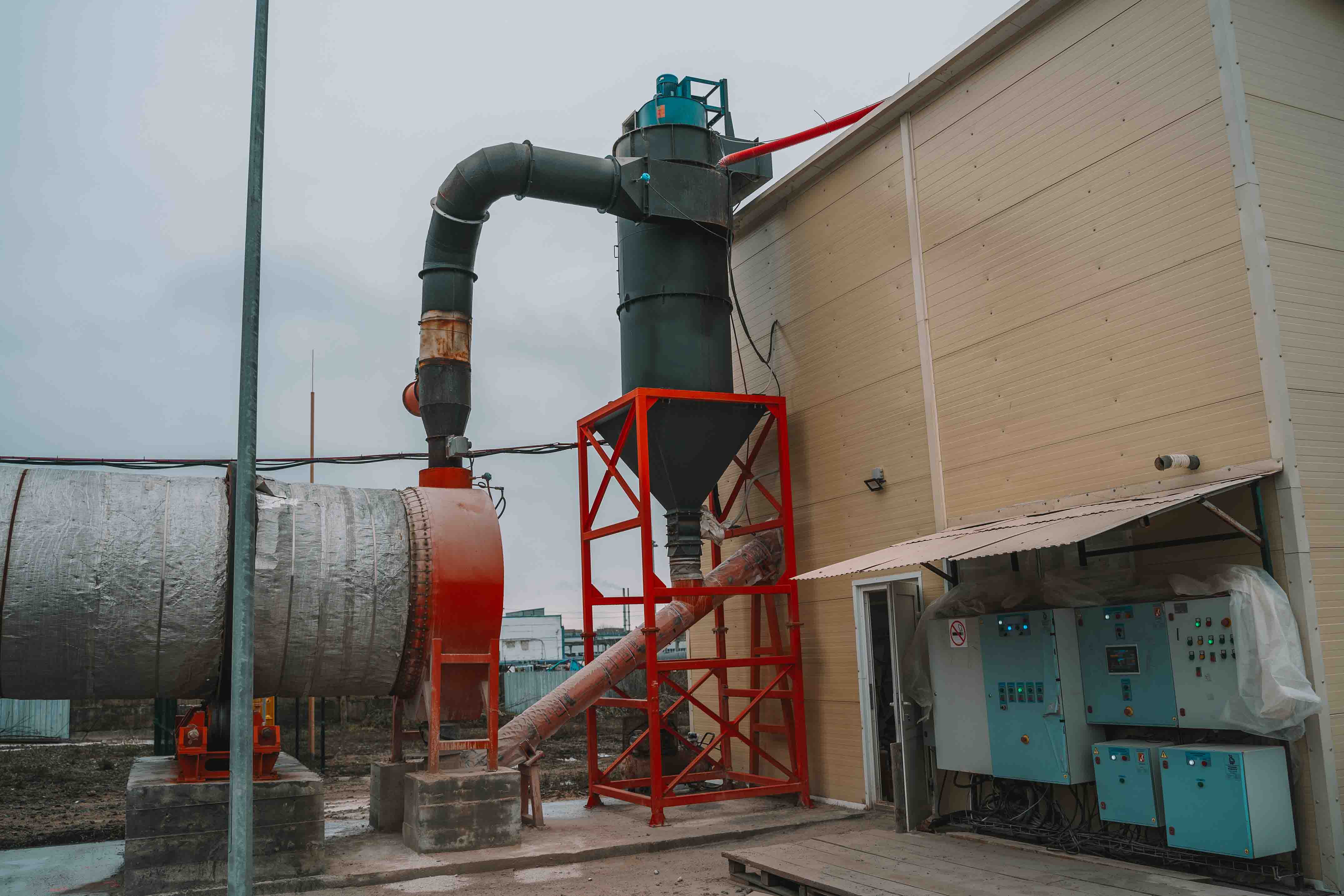 Для правильной работы сушильного барабана ПСП, требуется система аспирации, состоящая из группы циклонов 14, дымососа 15, воздуховодов 16. В зависимости от ТЗ заказчика и условий эксплуатации, система аспирации может комплектоваться второй ступенью очистки в виде рукавного фильтра.