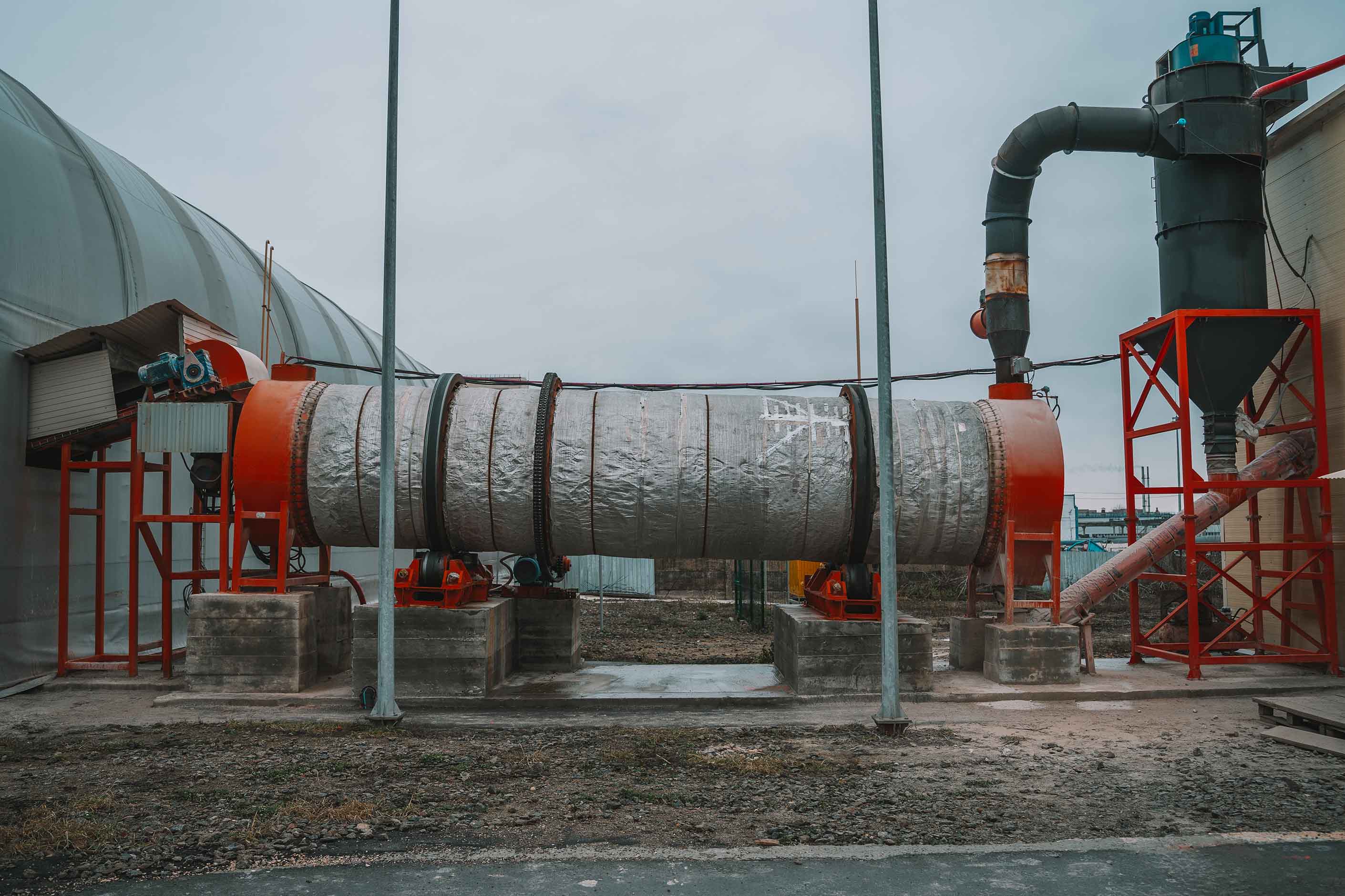 В загрузочной части 8 барабана присутствует отверстие для приточной вентиляции 12, необходимой для поступления теплоносителя в барабан. Приточная вентиляция в комплект поставки не входит. Сушильный барабан укомплектован устройством выгрузки 17.