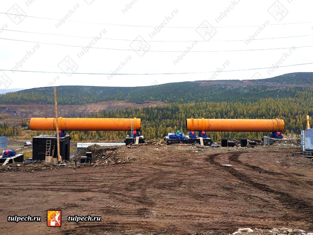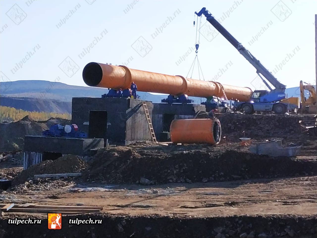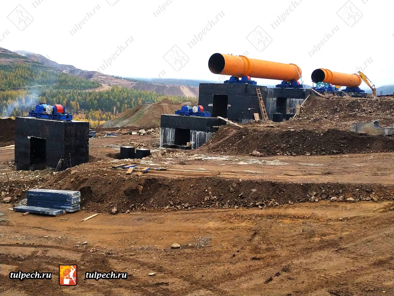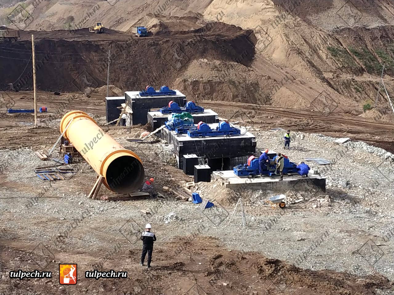 На данный момент, уже завершены все подготовительные и фундаментные работы, установлены опорные ролики и привод барабана печи. В данный момент идет процесс сборки непосредственно самого барабана печи!