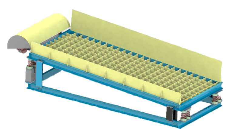 После согласования с заказчиком была разработана конструкция размером 4000х2100 мм, ячейкой размером 70х100 мм и максимальной амплитудой колебания 120 мм. Для удобства работы с виброрешёткой спроектирован съёмный передний борт.