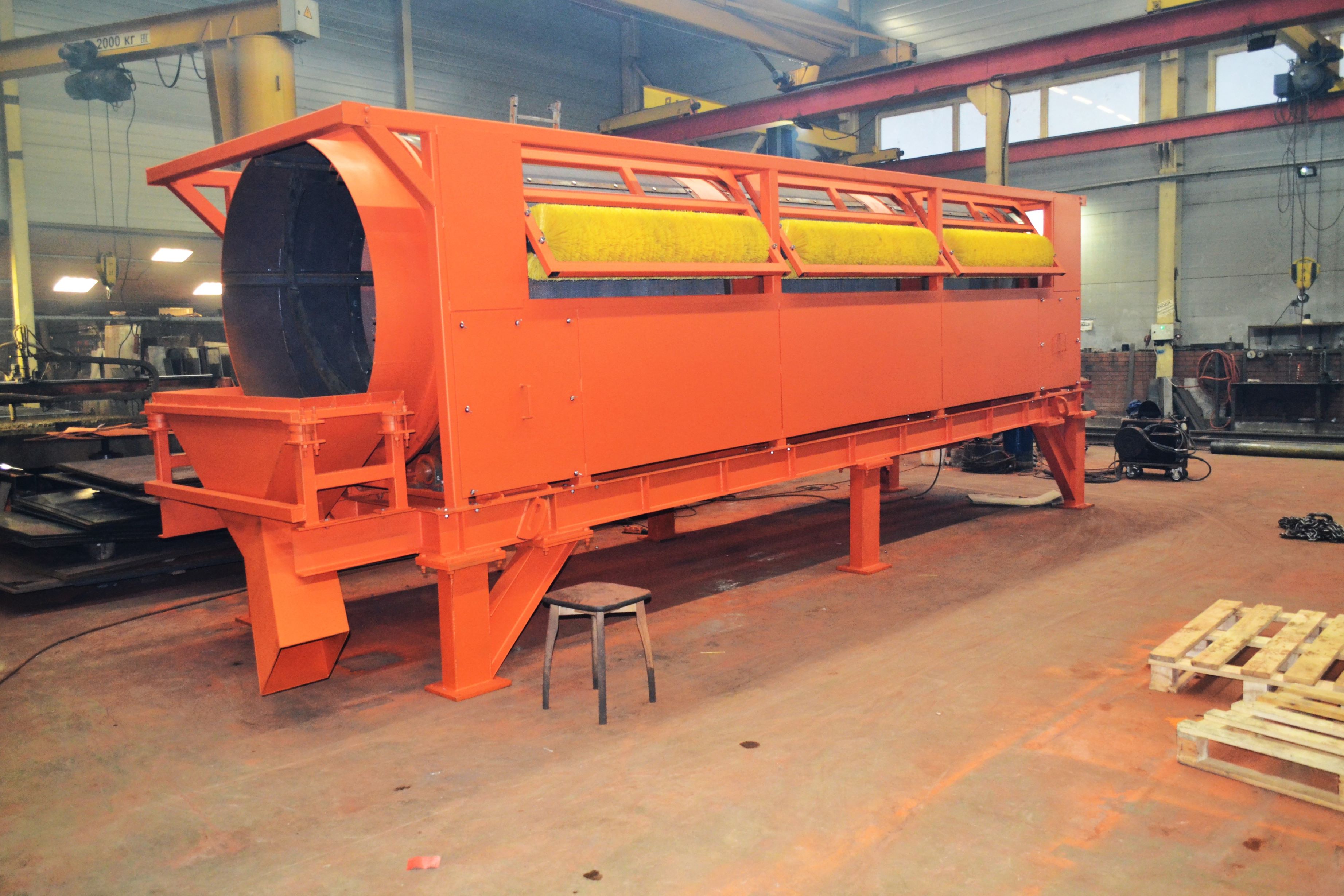 Барабанный грохот (Троммель) ГБ 2000/3400, оснащенный подающим ленточным питателем будет использоваться заказчиком в составе дробильно-сортировочного участка линии по переработке отходов. С помощью данного просеивающего устройства будет осуществляться рассев минерального волокна с включением минерального расплава, железа и базальта.