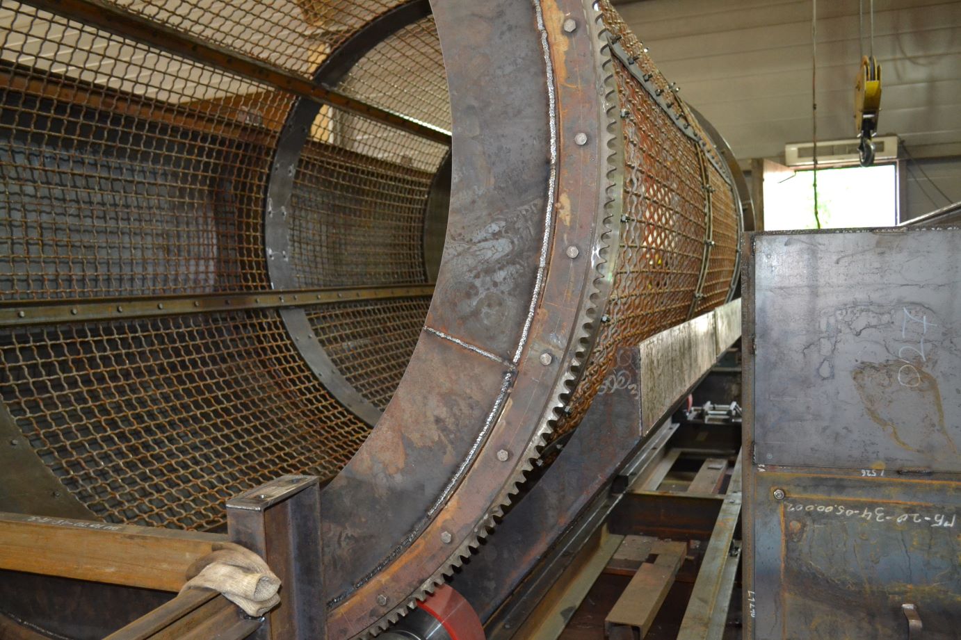 Конструктивно барабанный грохот представляет собой наклонный вращающийся цилиндр, поверхность которого оснащена просеивающими ячейками заданного размера. Основные узлы установки включают: