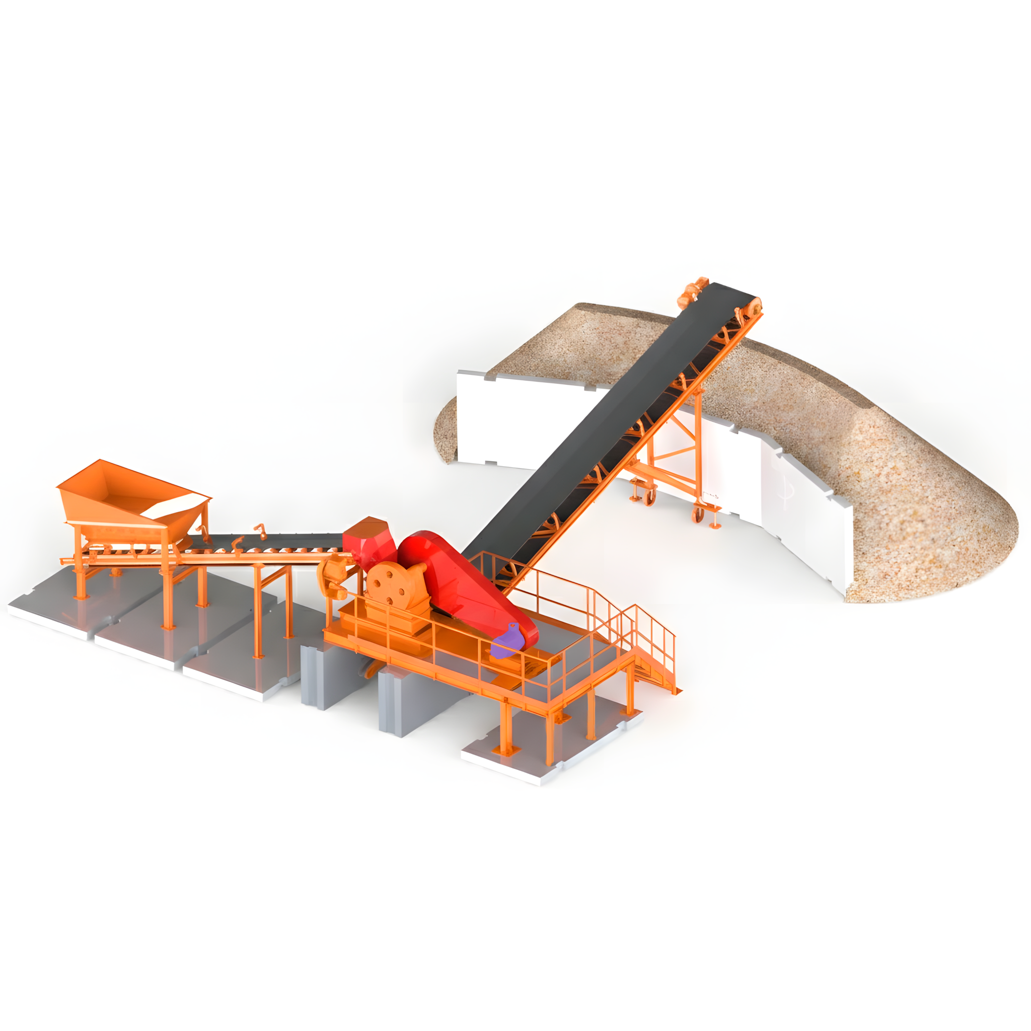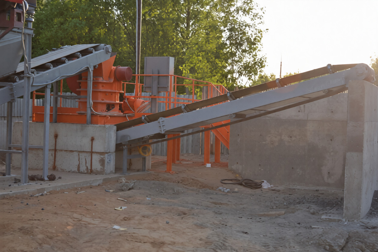 Складирование измельченного материала или подача его на дополнительные узлы линии осуществляется с помощью ленточного конвейера.