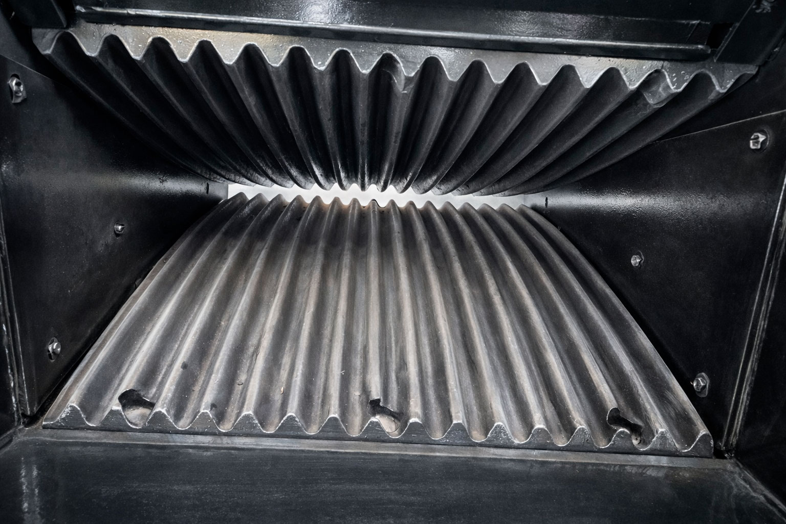 Щеки изготовлены из легированной износостойкой стали. Верхняя и нижняя плиты взаимозаменяемы, что снижает эксплуатационные расходы и упрощает обслуживание оборудования.