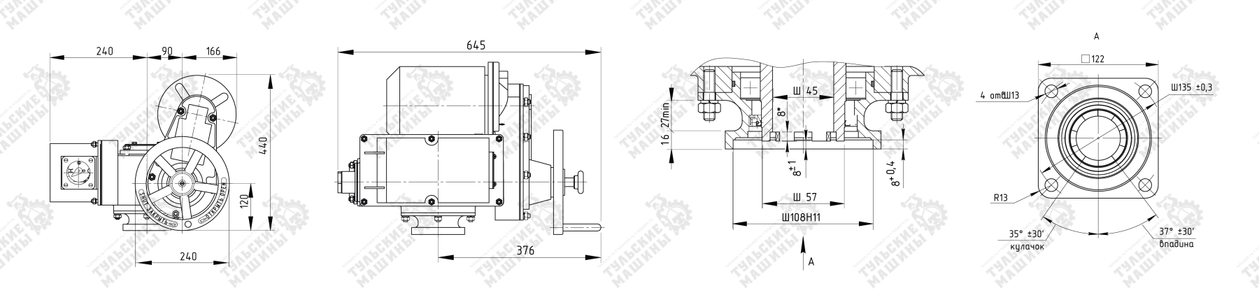 Электропривод НБ общепромышленного исполнения с червячно-цилиндрическим редуктором и двухсторонней муфтой. | ![]() |