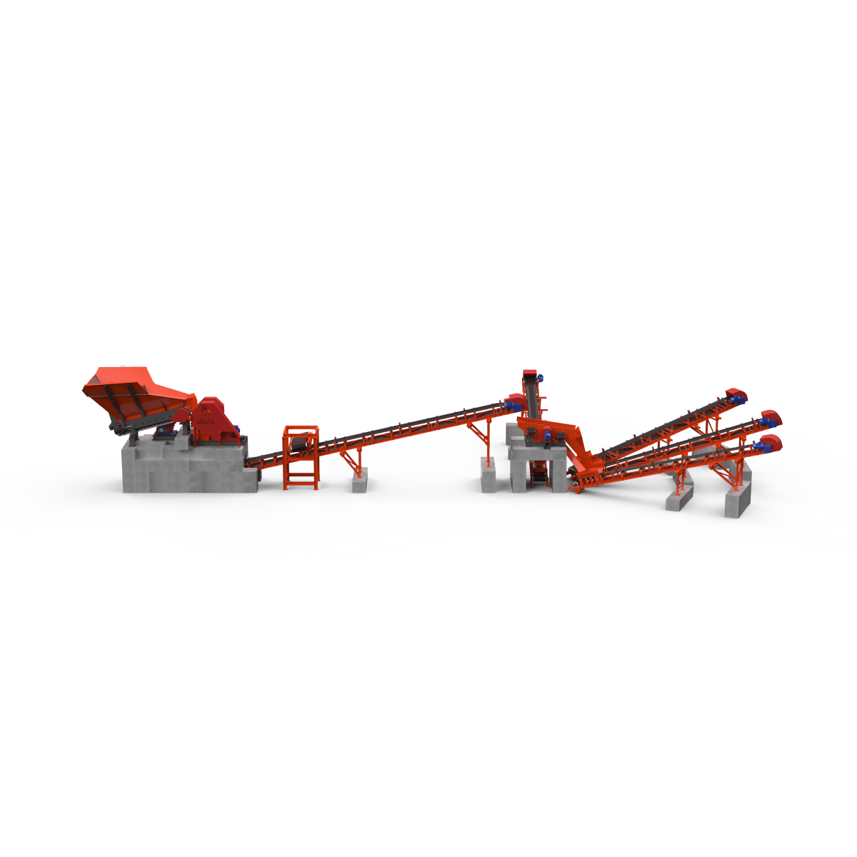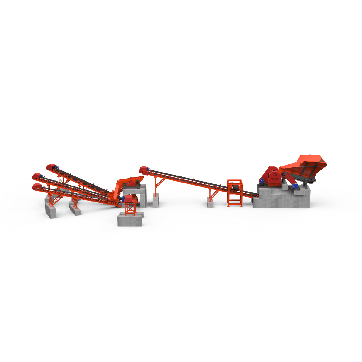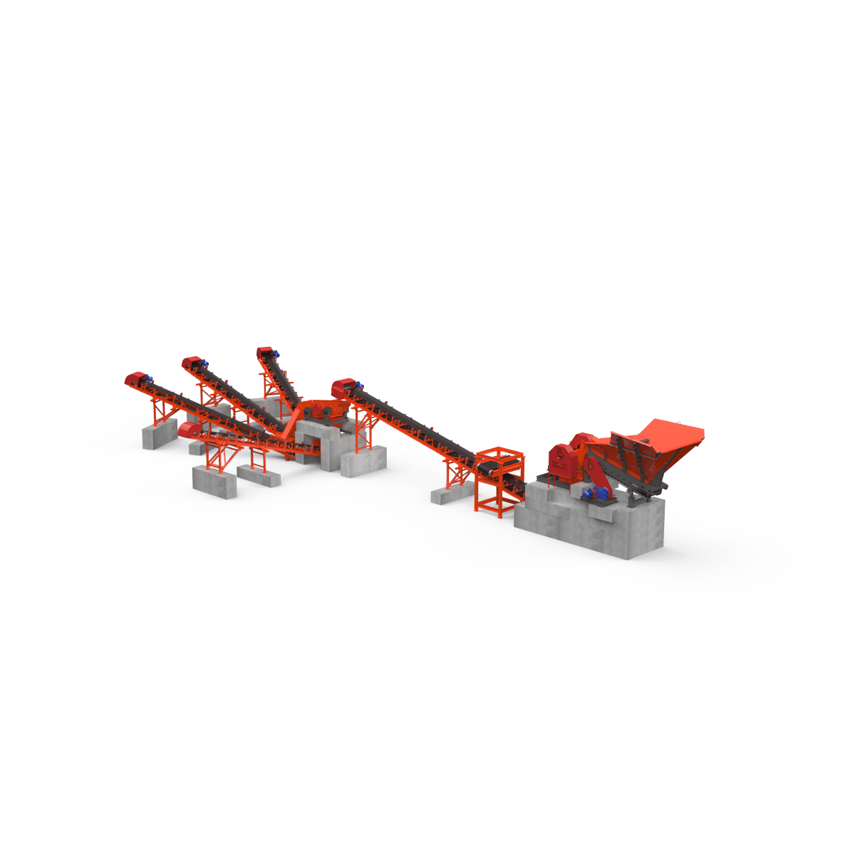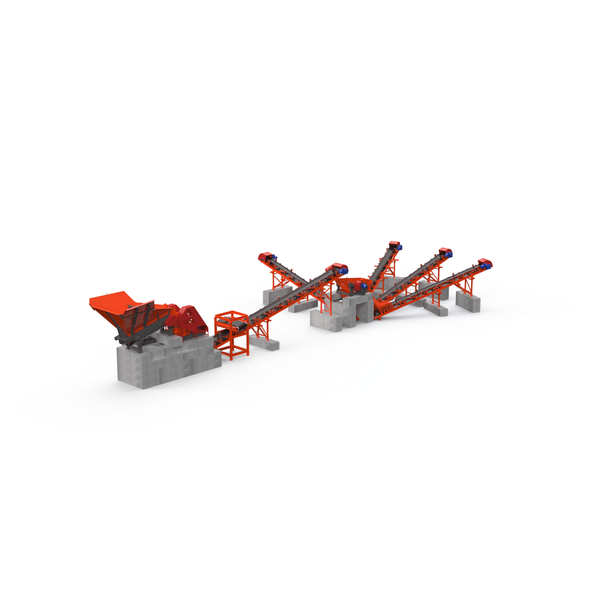 Конструкторами и инженерами Тульских Машин было предложено следующее решение: сформировать комплекс на основе щековой дробилки СДС-4/6, которая предназначена для дробления твердых рудных пород, минералов, некоторых видов металла, шлаков, бетона. В данную дробилку с помощью пластинчатого питателя П-804 подается материал, в случае заказчика это бетонные блоки. После раздробления бетонных конструкций, вторичный щебень с металлическими включениями попадает на ленточный конвейер КЛ-500/9000, где проходит через подвесной магнитный сепаратор, который забирает все металлические включения из раздробленного материала.