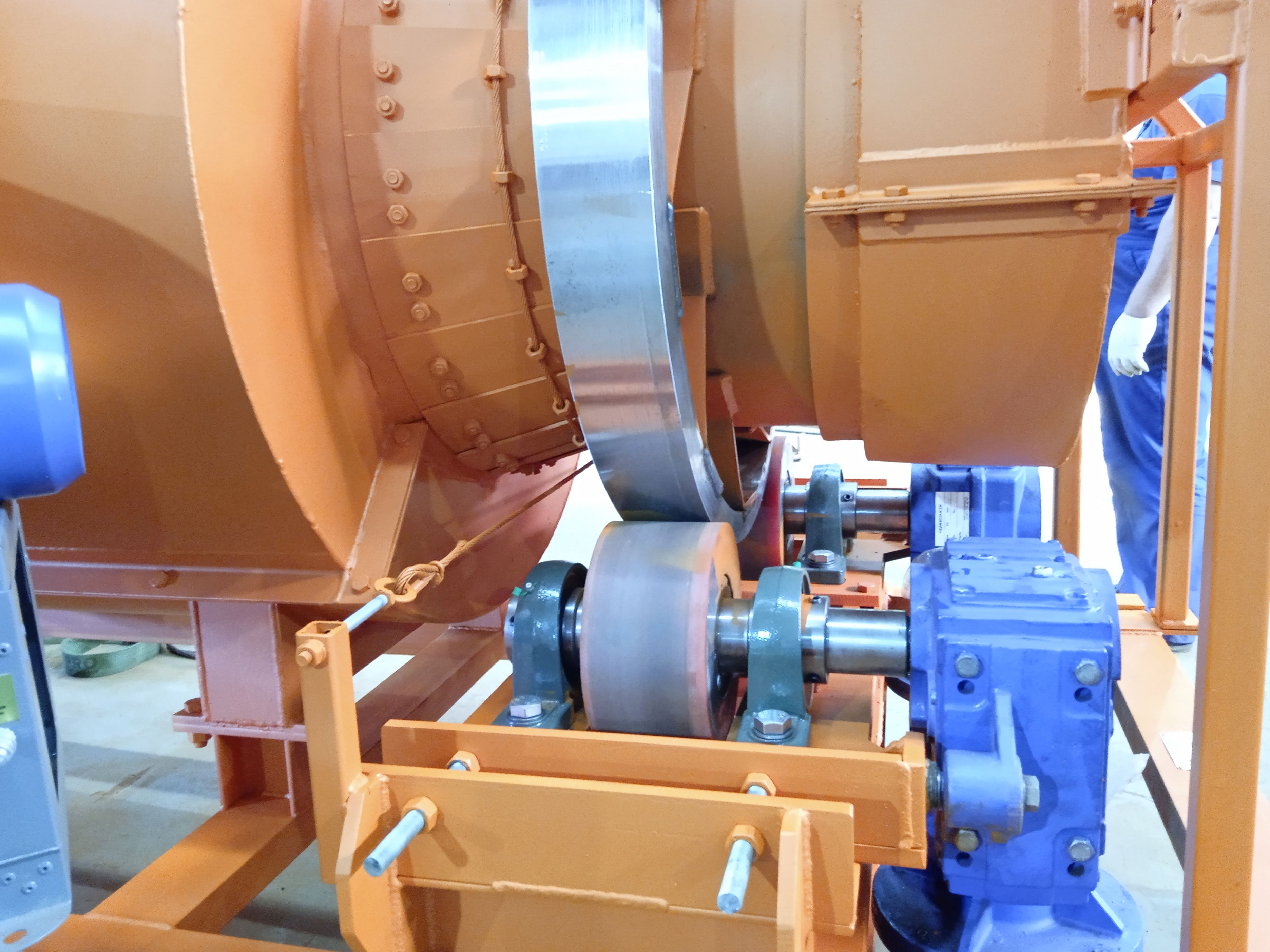 Перемещения необходимы для взаимной регулировки роликоопор с целью правильного распределения нагрузок от барабана, а также настройки их поступательного движения в осевом направлении при работе. На одной из опорных рам смонтированы контрольные упорные ролики 11, которые и определяют (ограничивают) осевые перемещения. Они не предназначены для восприятия значительных осевых нагрузок!, которые могут возникнуть при неправильной или несвоевременной регулировки опорных роликов печи. Они контрольные и отмечают предельные допустимые перемещения печи в осевом направлении. При разрушении контрольных роликов на печи, во избежание соскакивания бандажей с опор на первой опорной раме предусмотрены аварийные упоры.