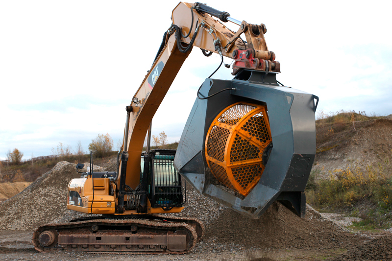 Оборудование устанавливается на экскаваторы и погрузчики, что позволяет выполнять сортировку непосредственно на месте работ без дополнительной техники.