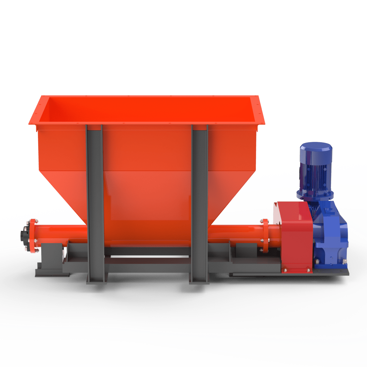 Материал поступает в загрузочный бункер шнека. При вращении вала, находящееся в корпусе шнека, сырье получает поступательное движение в осевом направлении корпуса и равномерно перемещается в направлении разгрузочного патрубка. Дойдя до разгрузочного отверстия, он под действием силы тяжести подается вниз.
