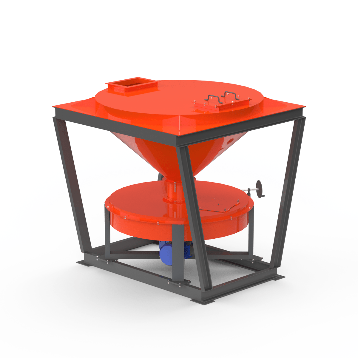 Дисковый питатель — это промышленное оборудование для дозированной и равномерной подачи сыпучих и мелкокусковых материалов в технологические линии. Подача материала осуществляется за счёт вращающегося горизонтального диска, с поверхности которого материал снимается регулируемыми элементами, что обеспечивает стабильный и контролируемый поток.