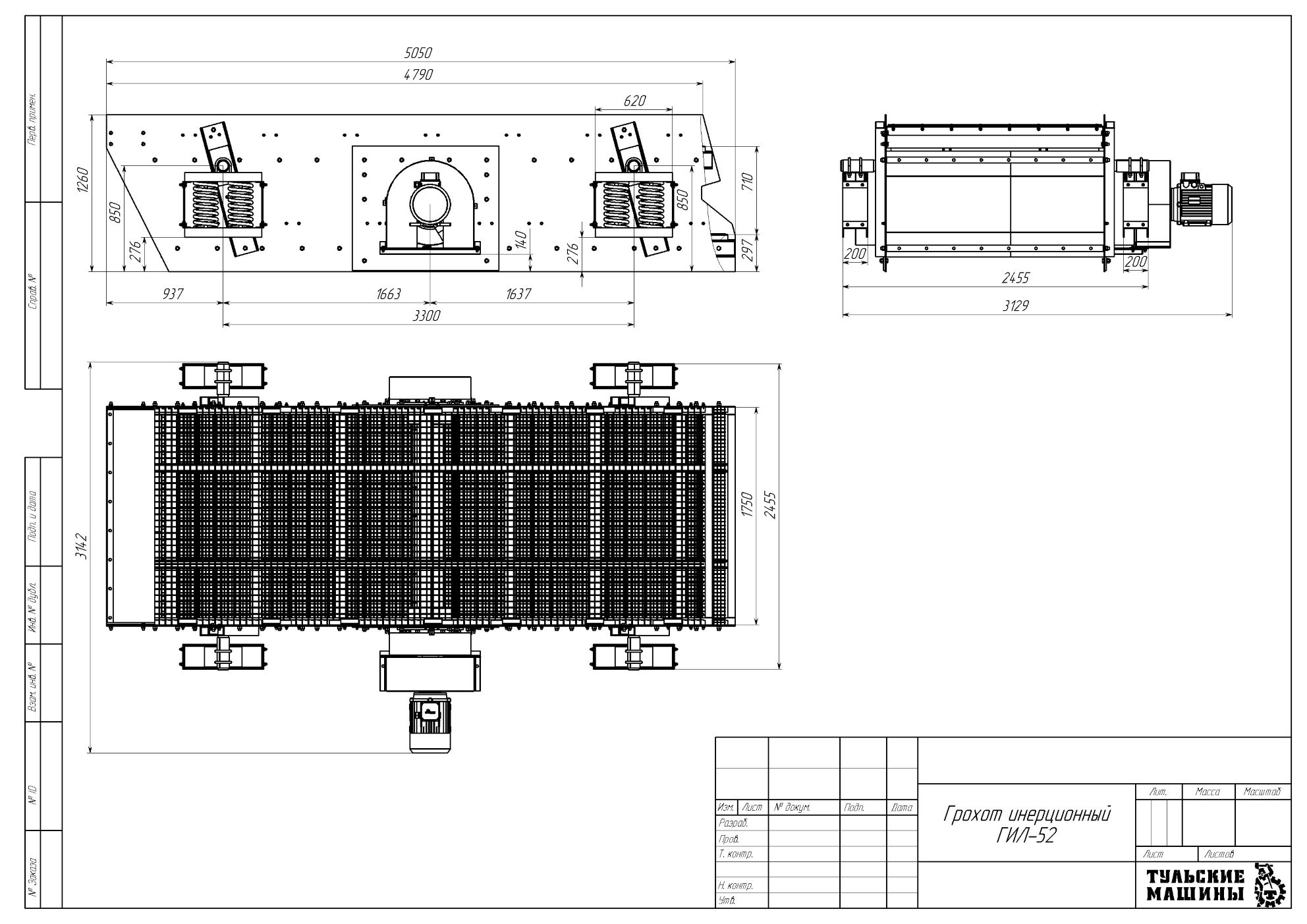 Грохот ГИЛ‑52 представляет собой вибрационную машину опорного исполнения, состоящую из: