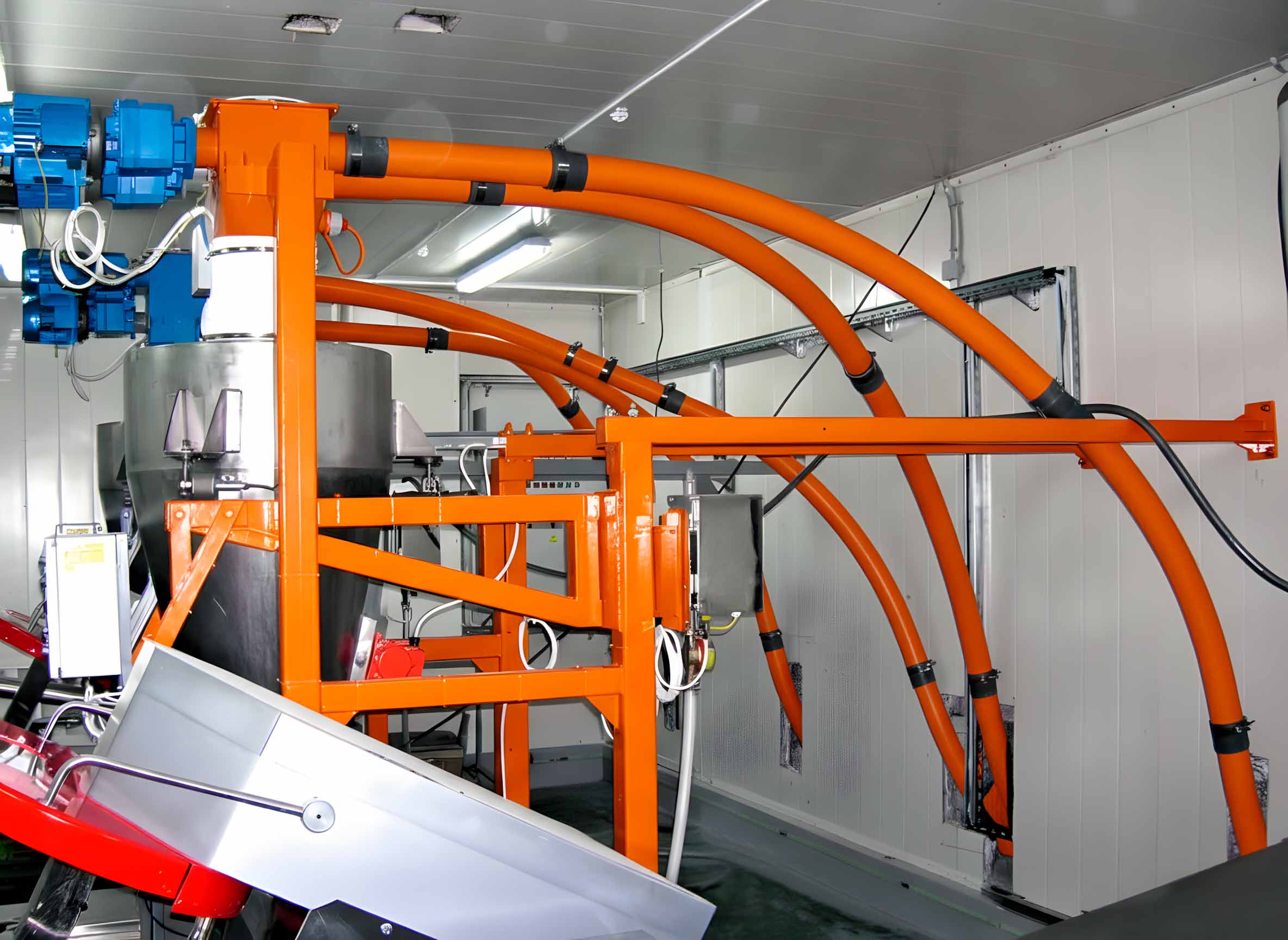 Гибкий шнек используется в случае необходимости прокладки трасс со сложной траекторией, на производственных площадках с плотной компоновкой оборудования – в таких случаях установка классического винтового шнека с жёстким корпусом не оправдана в силу экономических причин и громоздкости конструкции. Тем не менее гибкие шнеки не уступают в производительности и функциональной нагрузке другим видам транспортёров и выполняют те же задачи: транспортировку и дозирование сухих сыпучих материалов: опилок, муки, зерна, сахара и т.д