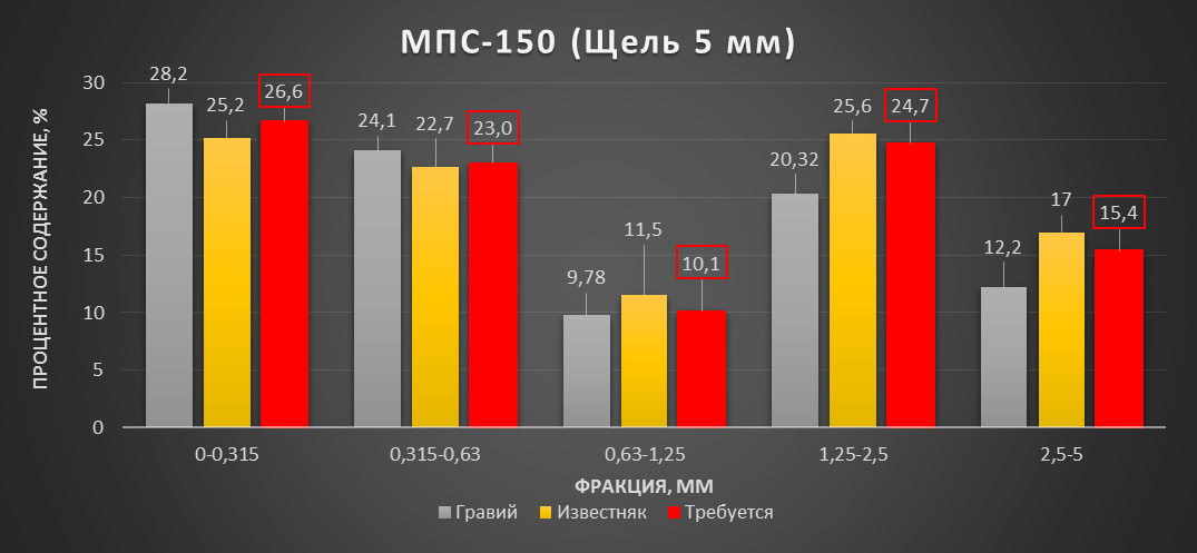 Таким образом, проводя сравнительную характеристику полученных результатов, видна общая закономерность распределения требуемого фракционного состава с полученным. Различие в графиках распределения фракционного состава обусловлено разными физико-механическими свойствами горных пород.